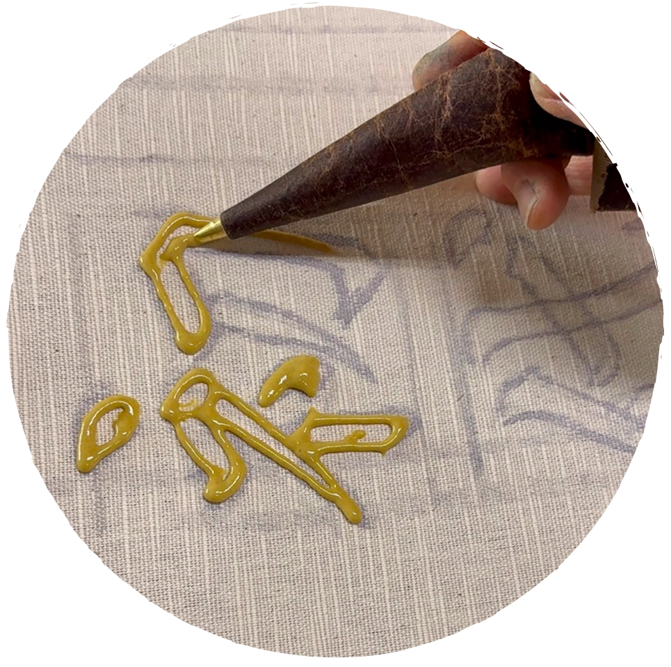 伝統の筒描き染めの技を生かし、一枚一枚丁寧に染め上げます。