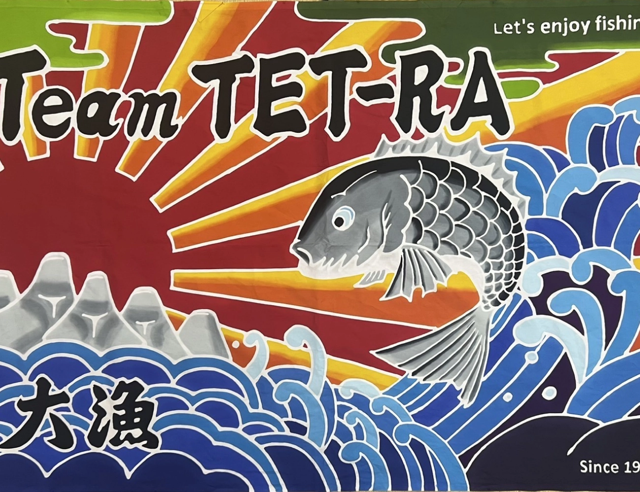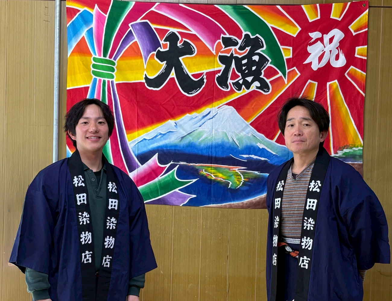 大漁旗や神社幟など、伝統の染物旗を本業として継承。